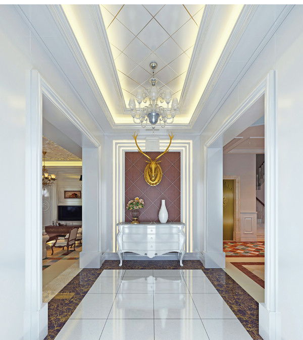 明亮的光線可以讓空間變得寬敞,也可以緩解狹長(zhǎng)過(guò)道所產(chǎn)生的緊張感。過(guò)道常用多個(gè)筒燈、射燈、壁燈營(yíng)造光環(huán)境。通過(guò)光線效果,增強(qiáng)過(guò)道的空間感,并且與客廳及其他空間區(qū)域相協(xié)調(diào)。